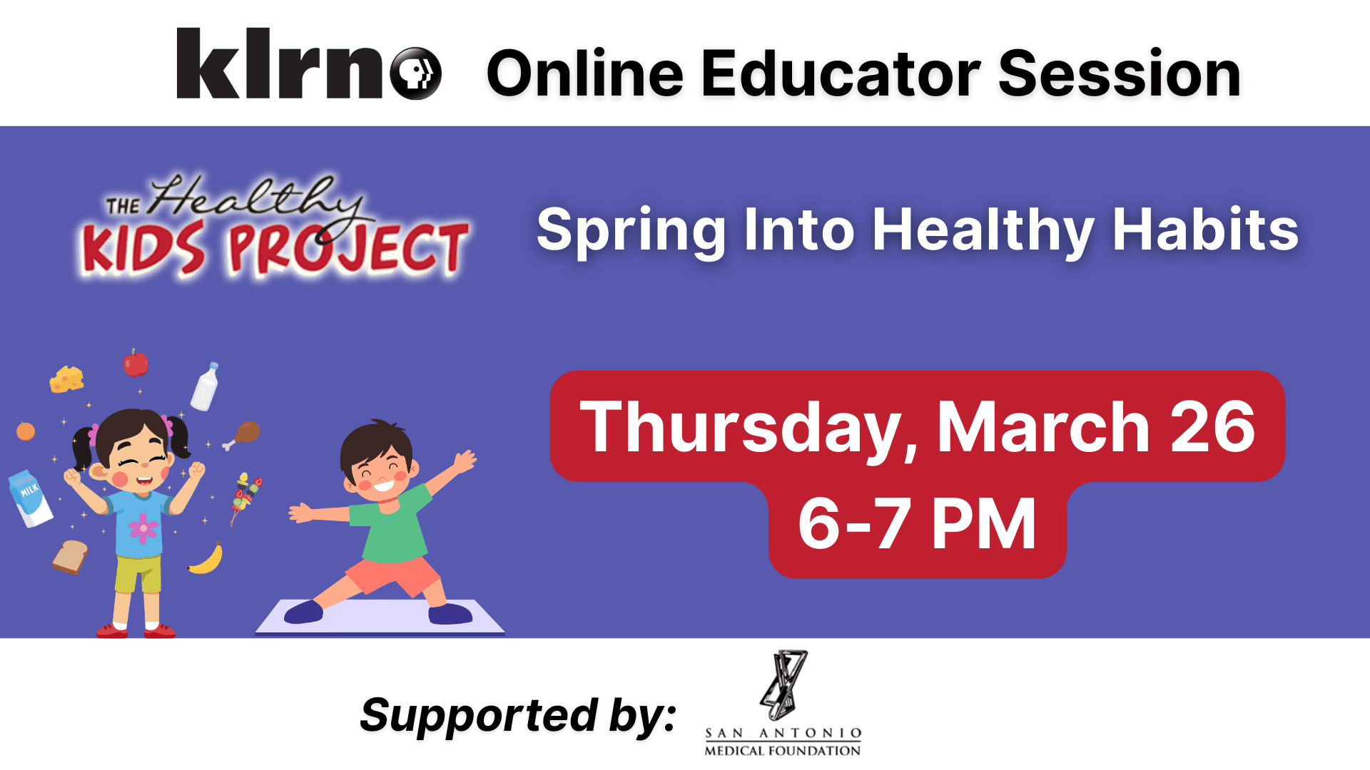Join KLRN to learn about building healthy habits using resources from The Healthy Kids Project.This session is geared toward early childhood through 2nd grade educators, but all are welcome.